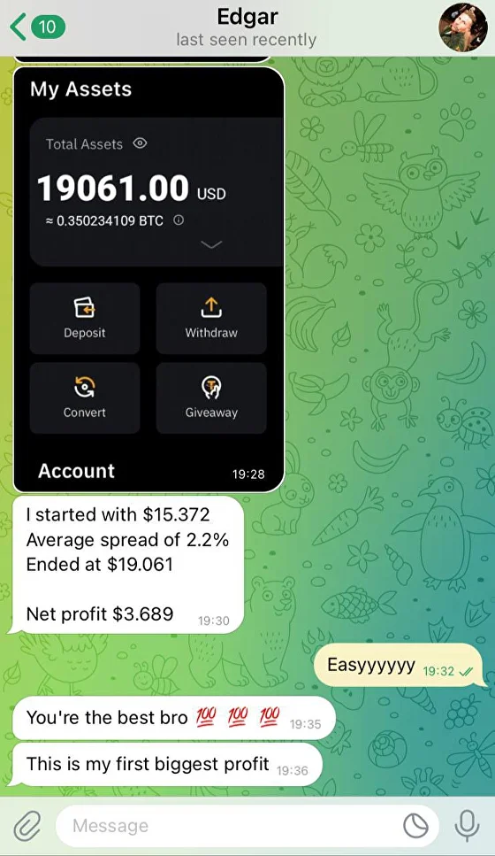 All work only inside Binance or Bybit. We do not work with third part sites! Spread from 0.5 to 4% of the circle is obtained. But at the same time we do not have any limits, such as working with cards. For the day quietly make +15-20% to the deposit.